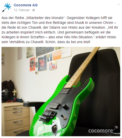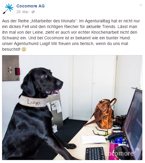 Ist ein Thema gefunden, kommt der schwierige Teil: Es gilt etwas zu finden, dass die Fans (hoffentlich) als witzig bzw. unterhaltsam empfinden. Ein möglicher Ansatz ist, Bekanntes mit Neuem oder Unerwarteten zu verbinden und auf diese Weise Komik zu erzeugen. Ein Beispiel: Mit unserer Post-Serie „Mitarbeiter des Monats“ sind keine Angestellten im herkömmlichen Sinne gemeint, sondern Gegenstände (oder tierische Kollegen) aus unserem Büro-Alltag, denen wir mit allerlei Redewendungen huldigen.